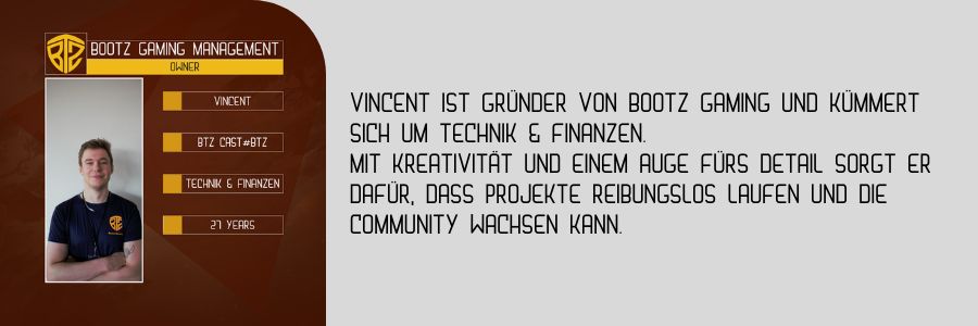 Bootz Gaming steht für mehr als nur Zocken: Wir bieten eine Plattform, auf der sich Spieler:innen vernetzen, gemeinsam trainieren und an Wettbewerben teilnehmen können. Dabei legen wir Wert auf Fairness, Zusammenhalt und die Förderung jedes einzelnen Members.